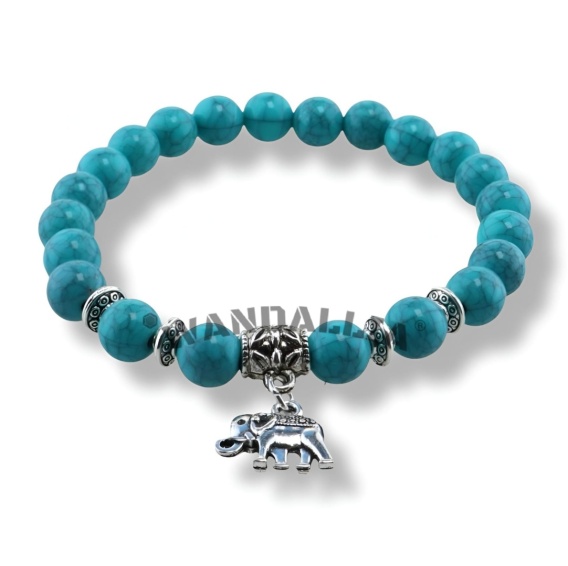 Bransoletka z syntetycznych Koralików imitujących Naturalne Kamienie Turkusowy Howlit i ozdobnego Charms ze Słonikiem Indyjskim