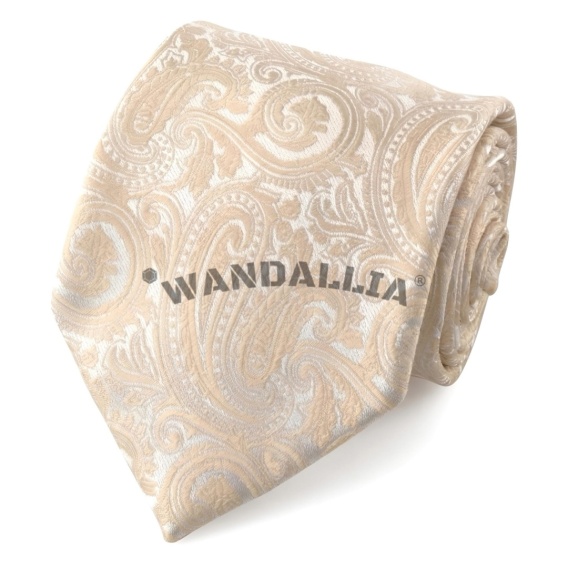 Klasyczny Krawat Męski w kolorze Jasny Beżowy Kaszmir z haftowanym wzorem.