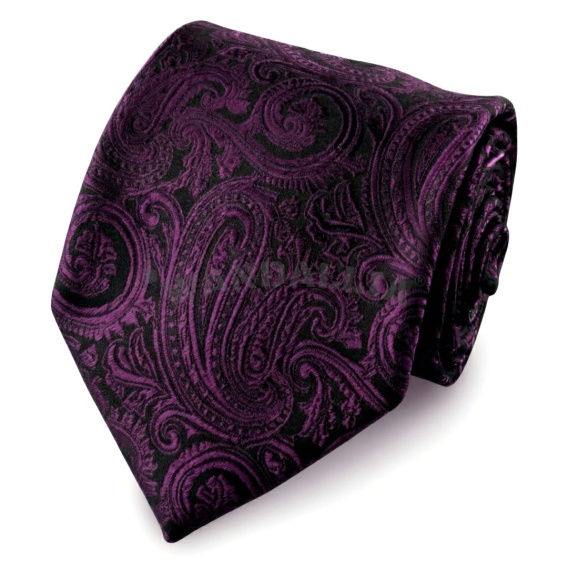 Klasyczny Krawat Męski w kolorze Fioletowym z haftowanym wzorem.