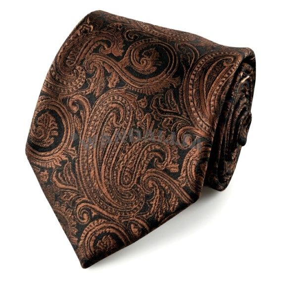 Klasyczny Krawat Męski w kolorze Brązowym (Orzechowym) z haftowanym wzorem.