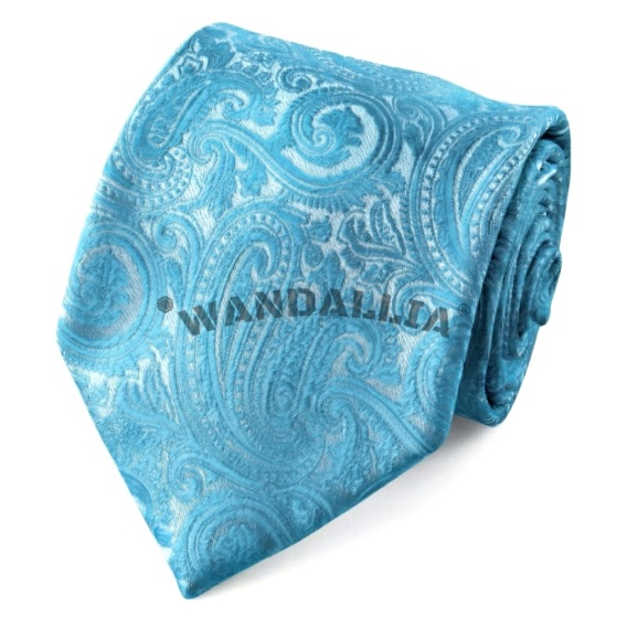 Klasyczny Krawat Męski w kolorze Turkusowym z haftowanym wzorem.